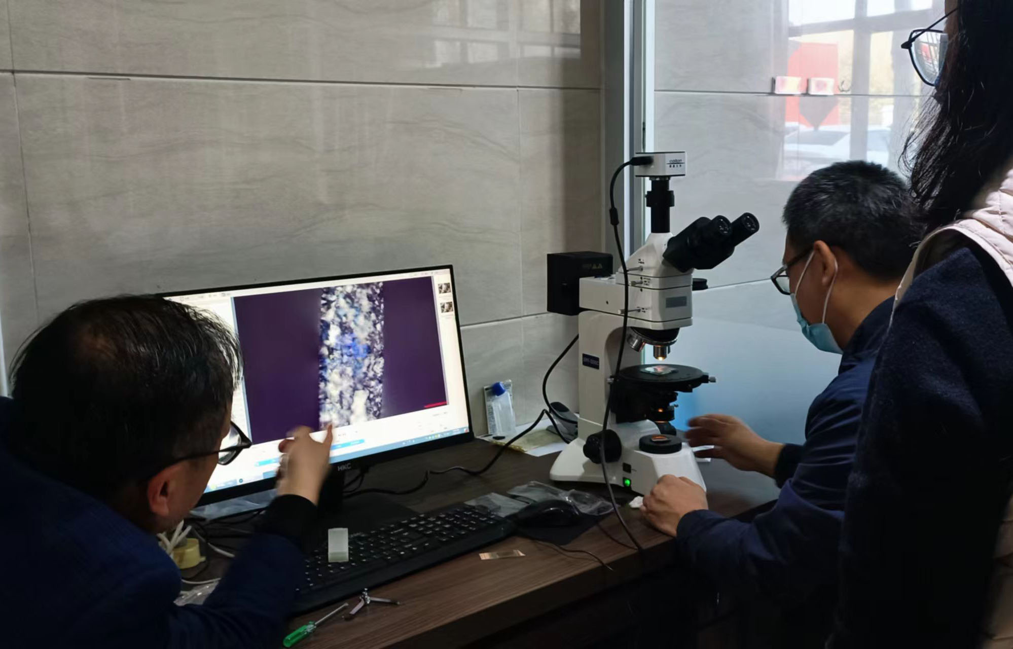 河北**玻璃有限公司选购透反射偏光显微镜XPF-550C调试现场。