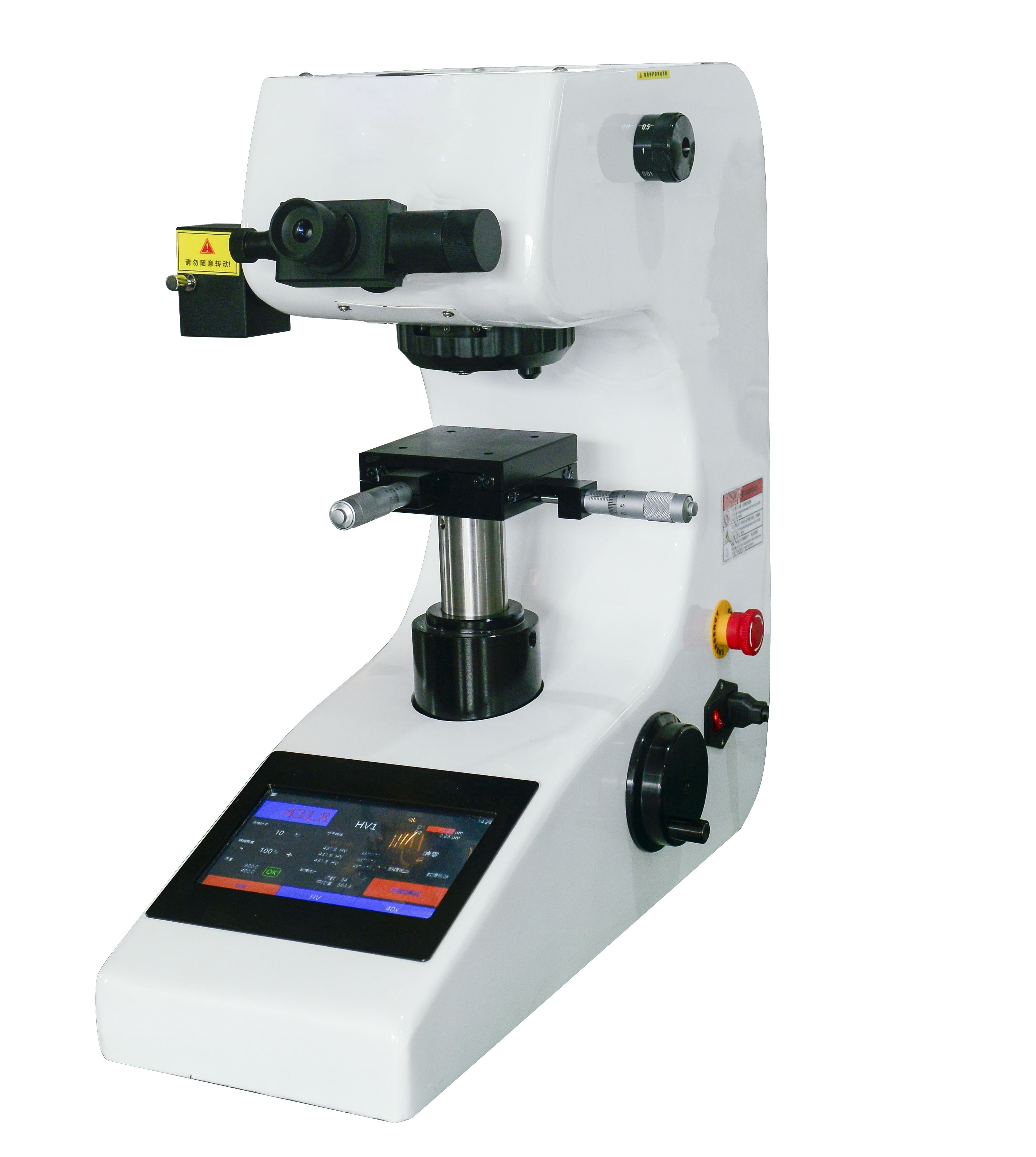 本款数显自动转塔显微硬度计是本公司新研制的新一代多功能触摸屏显微硬度计,该硬度计造型新颖,具有良好的可靠性、可操作性和重复性,是测试显微硬度的理想产品。该机采用C语言编制程序,高倍率光学测量系统和光学双通道结构,光电、光偶传感等新技术、可以满足基本的维氏硬度测试要求,从而更加快速准确的得出测量值,升级后的控制操作系统,采用7寸液晶触摸显示屏,可以提供更多的测量数据,控制也更全面精准。